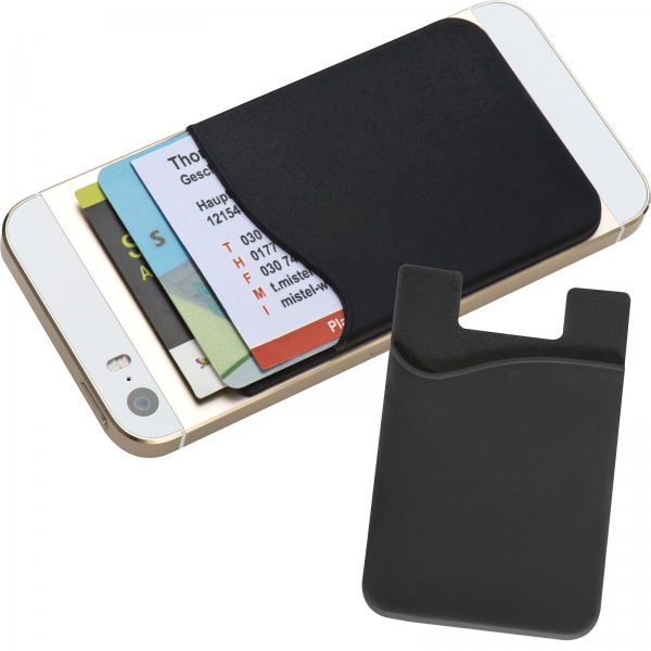Samoprzylepne silikonowe etui na wizytówki i karty, przeznaczone do umieszczenia z tyłu smartfona. Nadruk tylko w kolorze białym, czarnym lub srebrnym.