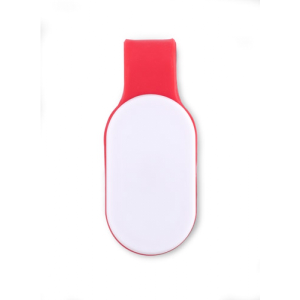 Lampka LED z magnesem CLIPSY to funkcjonalny gadżet reklamowy, który można łatwo przymocować dzięki wbudowanemu magnesowi. Wyposażona w elementy o właściwościach odbijających światło, dostępna w dwóch wariantach kolorystycznych, oferuje dwa tryby świecenia: stałe białe światło oraz pulsujące czerwone. Duża powierzchnia znakowania pozwala na wyeksponowanie nadruku reklamowego.