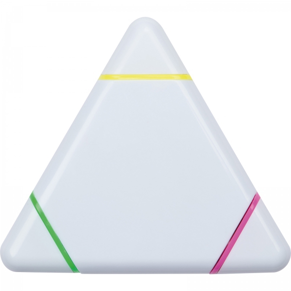 Trzykolorowy zakreślacz, wykonany z materiałów pochodzących z recyklingu, piszący na żółto, różowo i zielono.