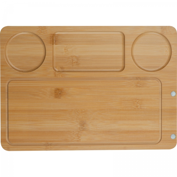 Duża deska wykonana z bambusa, z magentycznym uchwytem na sztućce do sera.