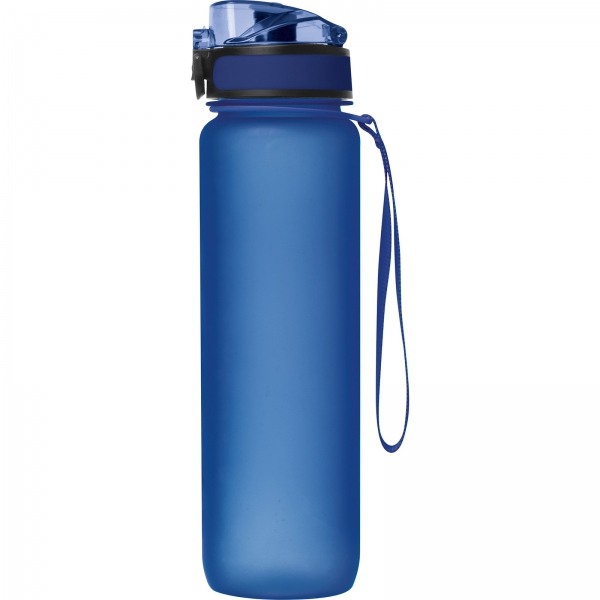 Szczelna, nie zawierająca BPA, sportowa butelka do picia wykonana z tritanu, z zamykaną pokrywką, paskiem na rękę. Pojemność 1000 ml.