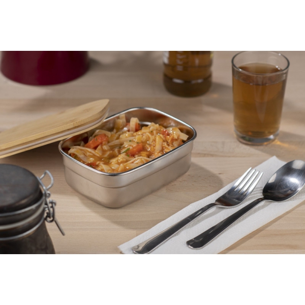 Pojemnik JOKI świetnie sprawdzi się do przechowywania żywności, a także do zapakowania gotowego posiłku i zabrania go ze sobą do pracy czy szkoły. Dużą zaletą pojemnika jest niepochłanianie zapachów pożywienia. Zamykany za pomocą bambusowej przykrywki. Wykonany ze stali nierdzewnej 304. Pojemność 470 ml.