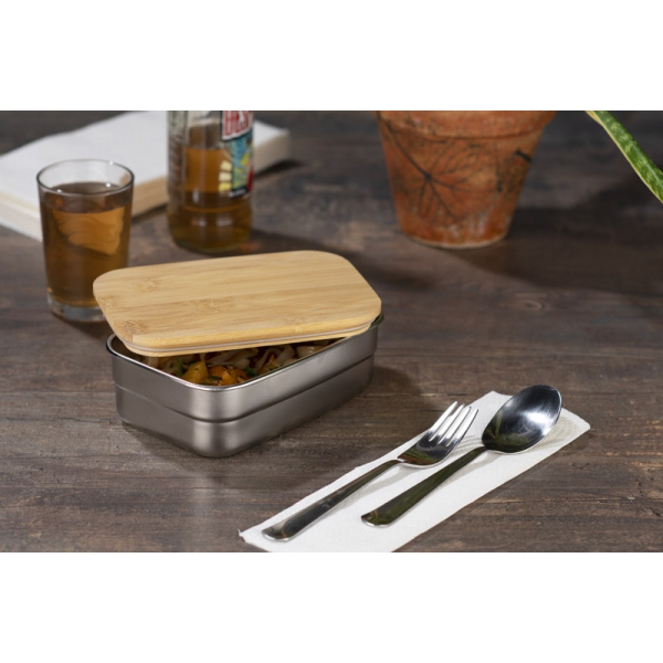 Pojemnik TORE świetnie sprawdzi się do przechowywania żywności, a także do zapakowania gotowego posiłku i zabrania go ze sobą do pracy czy szkoły. Dużą zaletą pojemnika jest niepochłanianie zapachów pożywienia. Zamykany za pomocą bambusowej przykrywki. Wykonany ze stali nierdzewnej 304. Pojemność 620 ml.