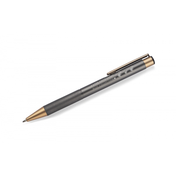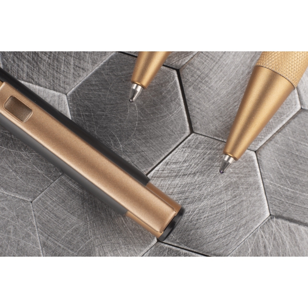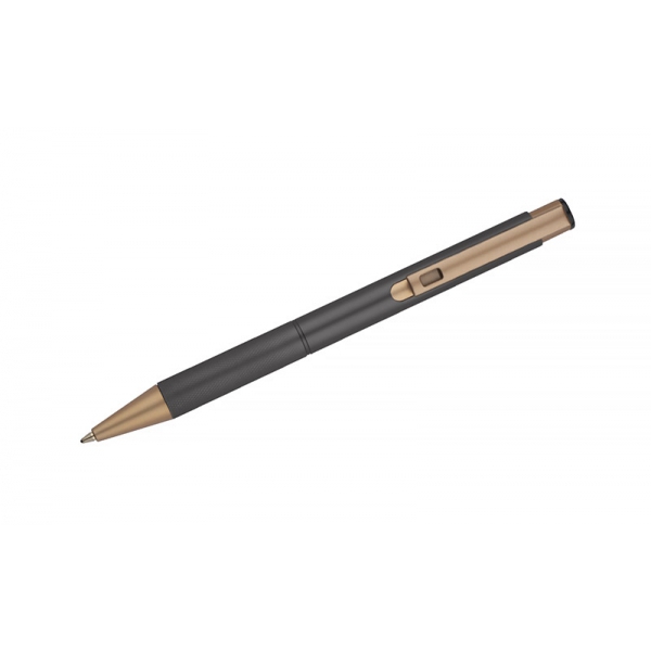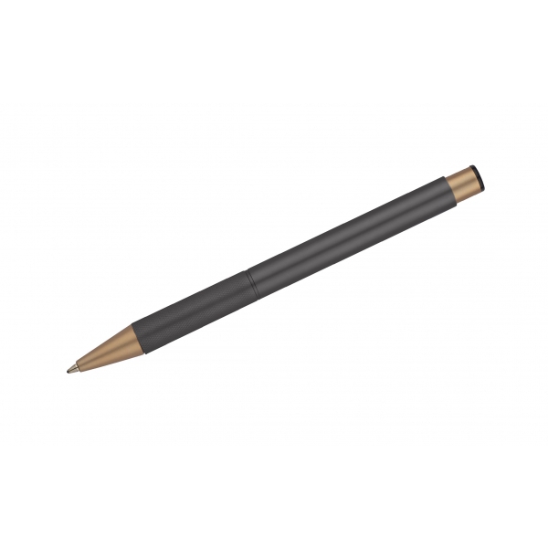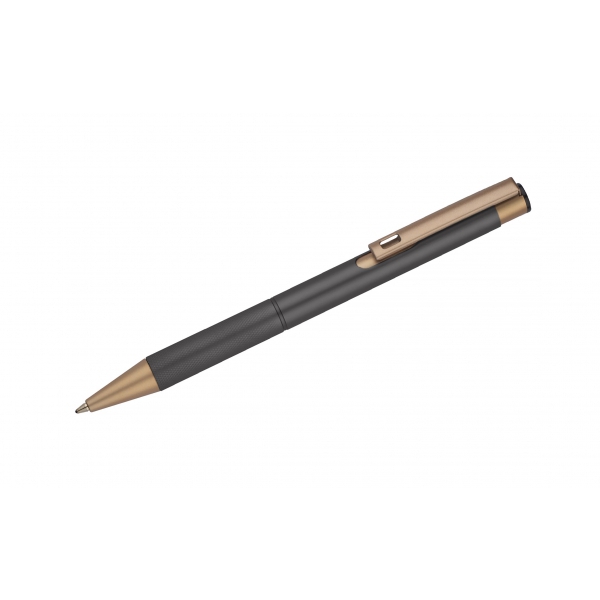Długopis VITE to elegancki model wykonany z metalu, wyposażony w automatyczny mechanizm wysuwu. Korpus w matowym wykończeniu kontrastuje z chromowanymi detalami i klipem w kolorze szampańskiego złota. Długopis posiada wkład typu G2 z tuszem półżelowym o grubości pisania 1,0 mm, który zapewnia płynny, równy zapis. Dzięki solidnej konstrukcji i starannemu wykończeniu stanowi idealny gadżet reklamowy dla osób ceniących nowoczesny design i precyzję pisania.