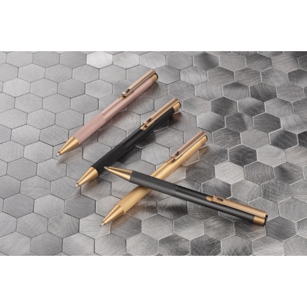 Długopis VITE to elegancki model wykonany z metalu, wyposażony w automatyczny mechanizm wysuwu. Korpus w matowym wykończeniu kontrastuje z chromowanymi detalami i klipem w kolorze szampańskiego złota. Długopis posiada wkład typu G2 z tuszem półżelowym o grubości pisania 1,0 mm, który zapewnia płynny, równy zapis. Dzięki solidnej konstrukcji i starannemu wykończeniu stanowi idealny gadżet reklamowy dla osób ceniących nowoczesny design i precyzję pisania.