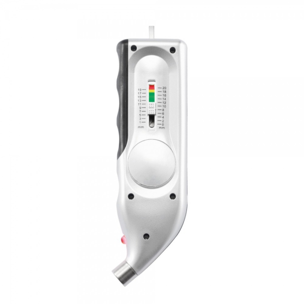 Cyfrowy miernik ciśnienia opon, manometr, miernik zużycia bieżnika, wykonany ze srebrnego ABS, czarny uchwyt, czerwona diodą LED, zakres pomiaru: 5-100 PSI, 0.5-7 Bar, 50-700 Kpa, ślad węglowy produktu: 1,18 kg CO2