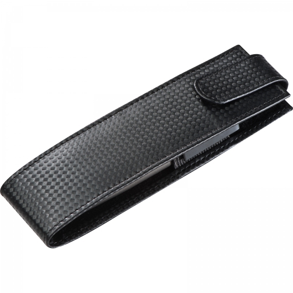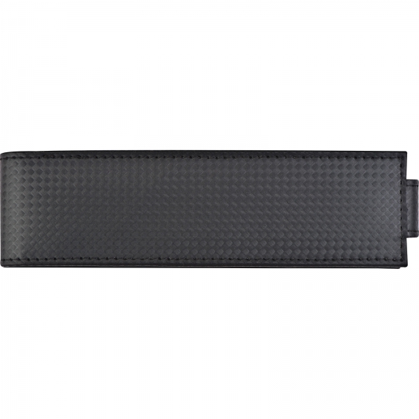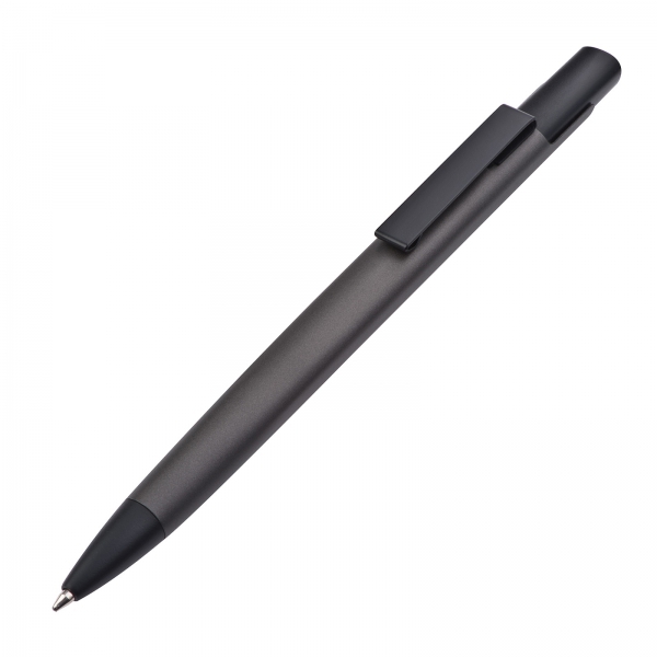 Metalowy zestaw piśmienniczy składający się z długopisu piszącego na niebiesko oraz ołówka automatycznego. Artykuły piśmienne umieszczone w etui zapinanym na zatrzask.
