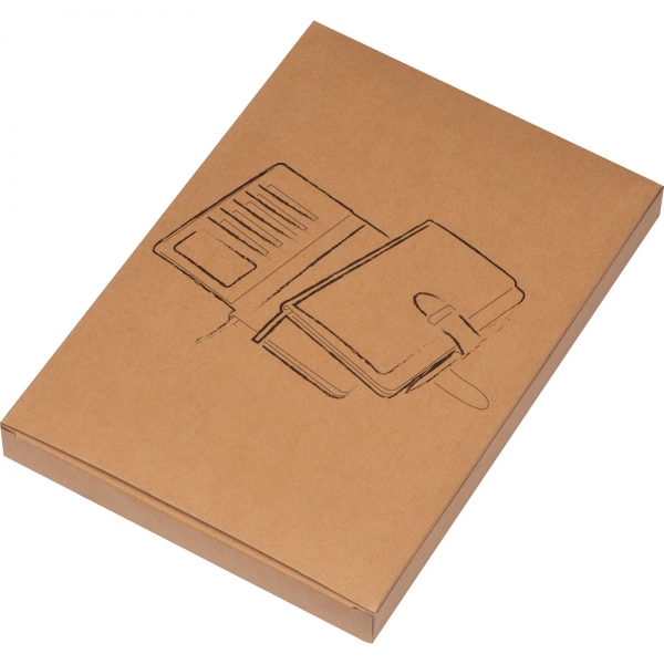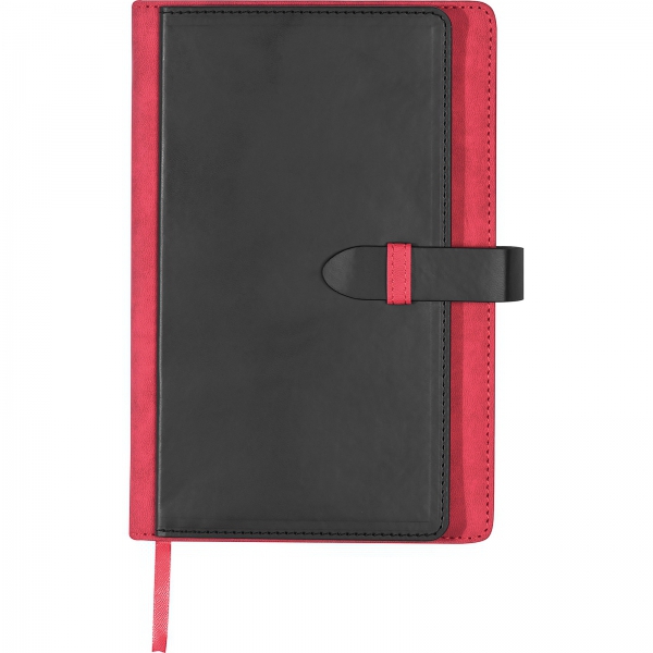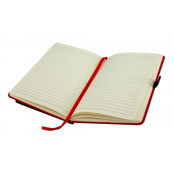 Notatnik A5 w okładce z PU, ze 128 kartkami w linie, miejscem na długopis i wizytownikiem na 5 wizytówek.