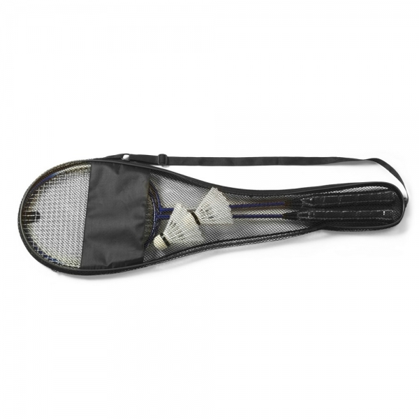 Zestaw do badmintona, 2 rakiety ze stalowymi ramami i plastikowymi rączkami, 2 lotki, czarny pokrowiec z paskiem na ramię