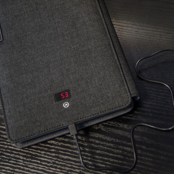 Notatnik z PU i poliestru, formatu A5 w linie (128 stron) z power bankiem o pojemności 4000 mAh. Dane techniczne:Typ baterii: litowo-polimerowaPojemność baterii: 4000 mAhInput: 1A, 5VOutput: 2.1A, 5VUżytkowanie: 0-40 stopni C / 32-104 stopni FTransport i przechowywanie: -10 do 50C / -4 do 122FInne:Kabel posiada złącza USB A i mikro USB.Kabel do ładowania folderu (zamieszczny pod notesem): 3w1 (lighting, typ C, mikro USB)Notes posiada 128 stron