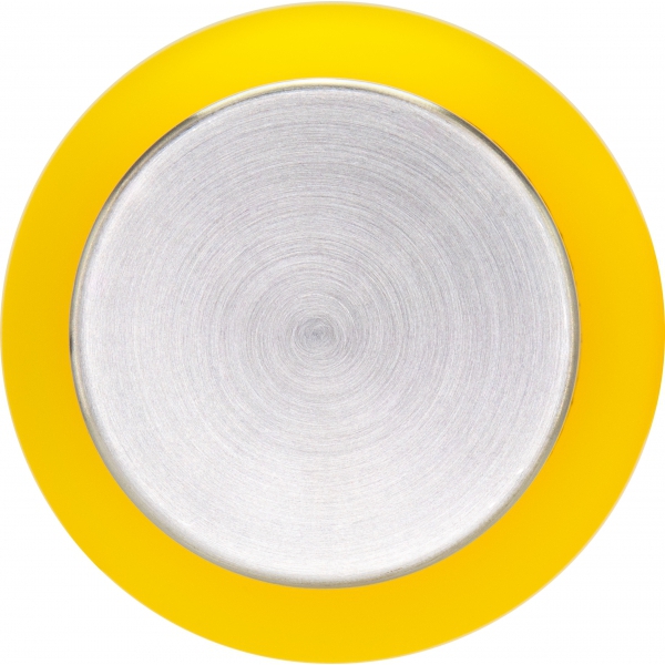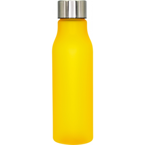Butelka o pojemności 550 ml, wykonana z przyjemnego w dotyku plastiku z gumowym wykończeniem i metalową zakrętką.