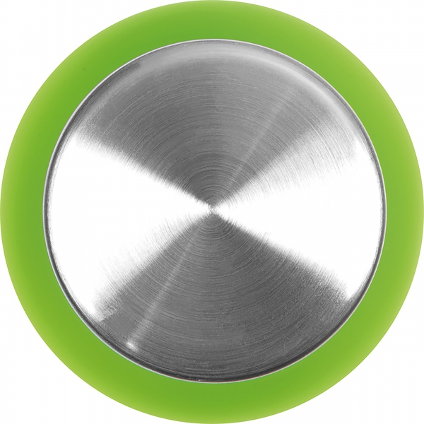Butelka o pojemności 550 ml, wykonana z przyjemnego w dotyku plastiku z gumowym wykończeniem i metalową zakrętką.