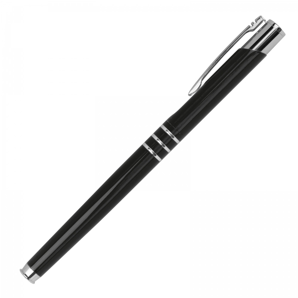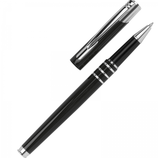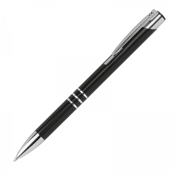 Zestaw z metalu i aluminium, składający się z piszącego na niebiesko długopisu i pióra kulkowego.