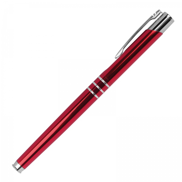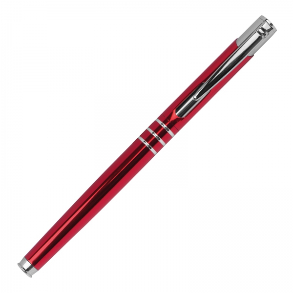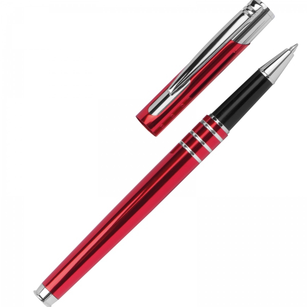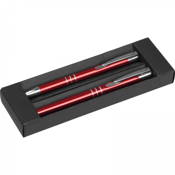 Zestaw z metalu i aluminium, składający się z piszącego na niebiesko długopisu i pióra kulkowego.