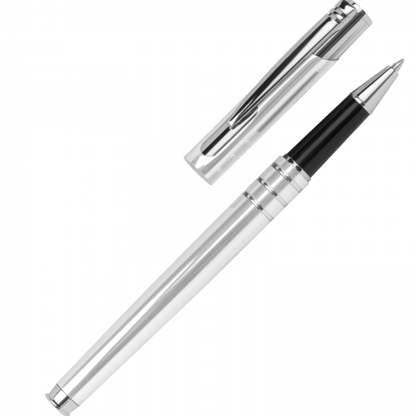 Zestaw z metalu i aluminium, składający się z piszącego na niebiesko długopisu i pióra kulkowego.