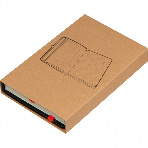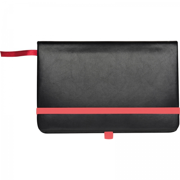 Notatnik A6 w okładce ze skóry syntetycznej, ze 160 stronami w linie, zakładką, pętelką na długopis i gumką do zamykania.